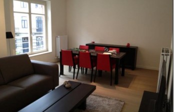 ETTERBEEK: Dans une construction récente au 2è étage, bel appartement desservant salon et salle à manger, cuisine usa équipée. Deux chambres et deux salles de bains. Parquet, double vitrage, possibilité de louer une cave et un parking au -1 de l 'immeuble. Visites: 02/734.24.54