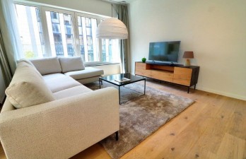 IXELLES : Rue de Trèves, à proximité de la place du Luxembourg, très bel appartement meublé, moderne et neuf au 2ème étage, desservant hall d'entrée, un grand séjour, une cuisine en plan ouvert, super équipée. 2 belles chambres, une salle de bain et douche, une terrasse. Parquet au sol, double vitrage, buanderie, ascenseur. PEB D. Proche commerces et transports. www.atlasrealestate.be. Visites : +32 2 734.24.54 - Mob.+32 4758.38.69.05