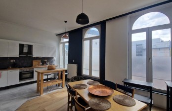 BRUXELLES centre : Rue de Laeken 20, proximité de Ste Catherine, dans une maison de Maître se trouve ce superbe appartement, entièrement meublé et rénové, au 2ème étage, d'une surface de +/- 135m², desservant séjour, cuisine équipée, avec lave linge, 3 chambres, salle de douche. Parquet au sol, double vitrage, interphone, chauffage individuel au gaz. PEB E. Beaucoup de charme. Idéale pour une co-location. L'appartement est situé au dessus d'un commerce. www.atlasrealestate.be. Visites: 02/734.24.54 - 0475/38.69.05