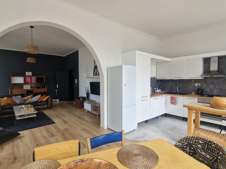 BRUXELLES centre : Rue de Laeken 20, proximité de Ste Catherine, dans une maison de Maître se trouve ce superbe appartement, entièrement meublé et rénové, au 2ème étage, d'une surface de +/- 135m², desservant séjour, cuisine équipée, avec lave linge, 3 chambres, salle de douche. Parquet au sol, double vitrage, interphone, chauffage individuel au gaz. PEB E. Beaucoup de charme. Idéale pour une co-location. L'appartement est situé au dessus d'un commerce. www.atlasrealestate.be. Visites: 02/734.24.54 - 0475/38.69.05