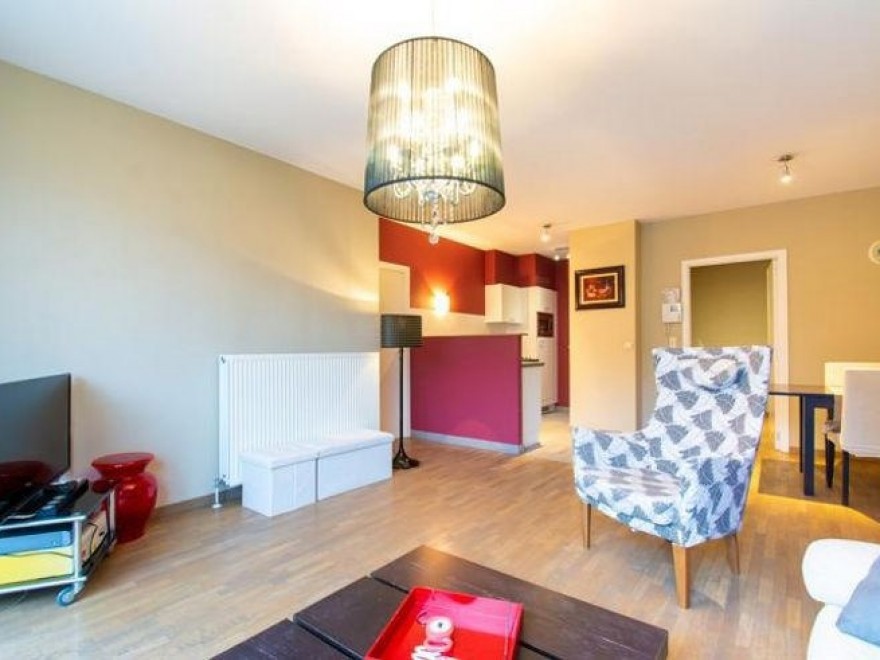 ETTERBEEK : Proche du métro Mérode et le parc du 50naire : bel appartement meublé au 3ème étage, d'une surface habitable de +/- 130m², desservant un hall d'entrée avec wc's séparé, vestiaire. Agréable séjour et salle à manger avec sa cuisine américaine équipée. 2 belles chambres et 2 salles de bains. Parquet au sol, double vitrage, terrasse, buanderie.. Possibilité de louer un parking au -1 de l'immeuble. Au calme et entouré de verdure. www.atlasrealestate.be Visites: 02/734.24.54