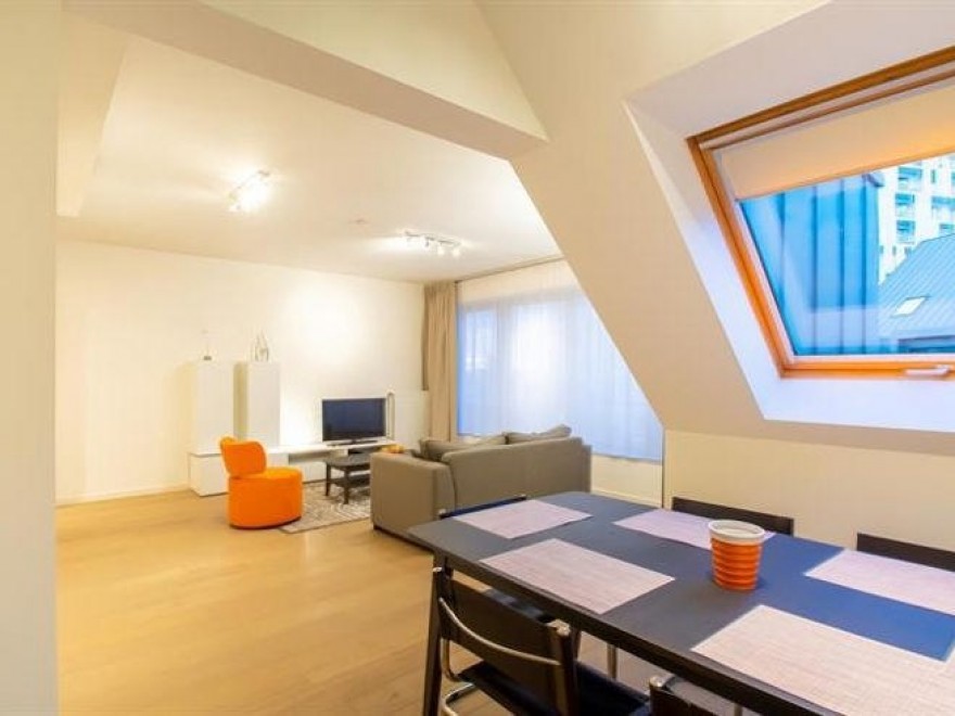 Evère : Rue de Genève, dans un immeuble moderne , bel appartement meublé de style moderne au 5ème étage, d'une surface habitable de +/- 100m², desservant séjour et salle à manger, cuisine américaine super équipée. 2 chambres, salle de bain, salle de douche. Parquet au sol, double vitrage, ascenseur, terrasse, possibilité de parking PEB C. A voir !!! www.atlasrealestate.be. Visites : 02/734.24.54 - 0475/38.69.05