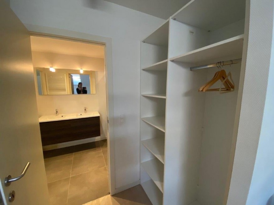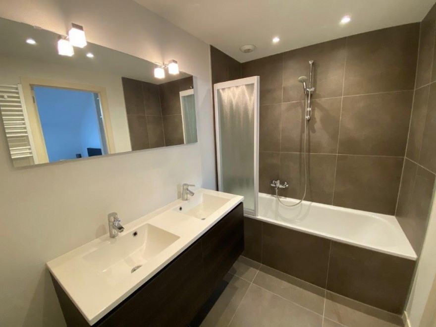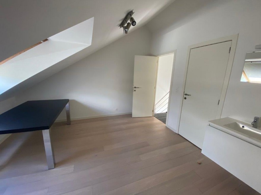 Ixelles : à proximité de la place du Luxembourg et du Parlement, immeuble moderne au 5ème étage très beau duplex meublé, d'une surface habitable de +/- 135m², desservant hall d'entrée, séjour et salle à manger, cuisine américaine super équipée. 3 chambres, 1 salle de bain, 2 salles de douches, 2 toilettes séparées. Parquet, double vitrage, ascenseur, buanderie, agréable terrasse donnant sur grand jardin. Proche commerces et transports. A découvrir !!! www.atlasrealestate.be. Visites : 02/734.24.54 - 0475/38.69.05